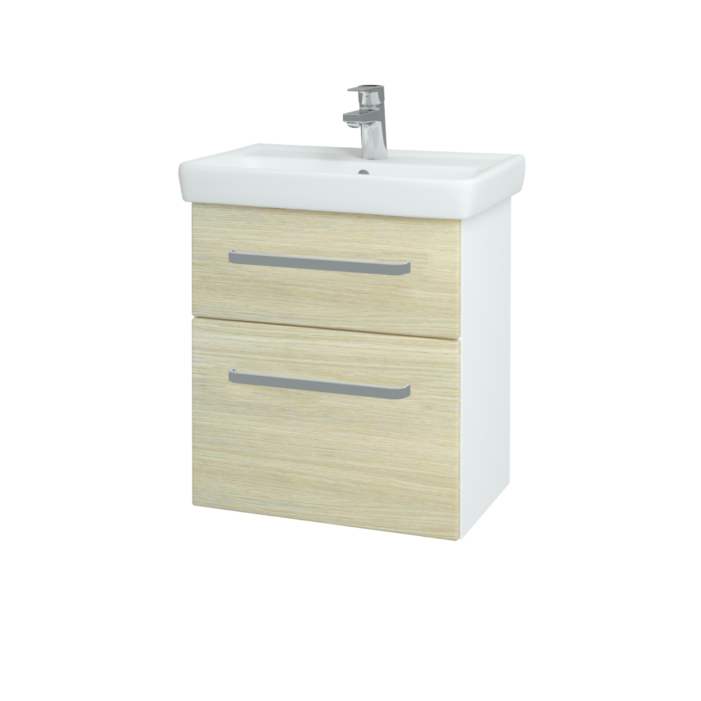 Závesná kúpeľňová skrinka GO SZZ2 55 s umývadlom (súčasťou ceny) a dvoma zásuvkami je súčasťou praktickej kolekcie , ktorej prednosti ocenia predovšetkým majitelia menších či stredných kúpeľní.