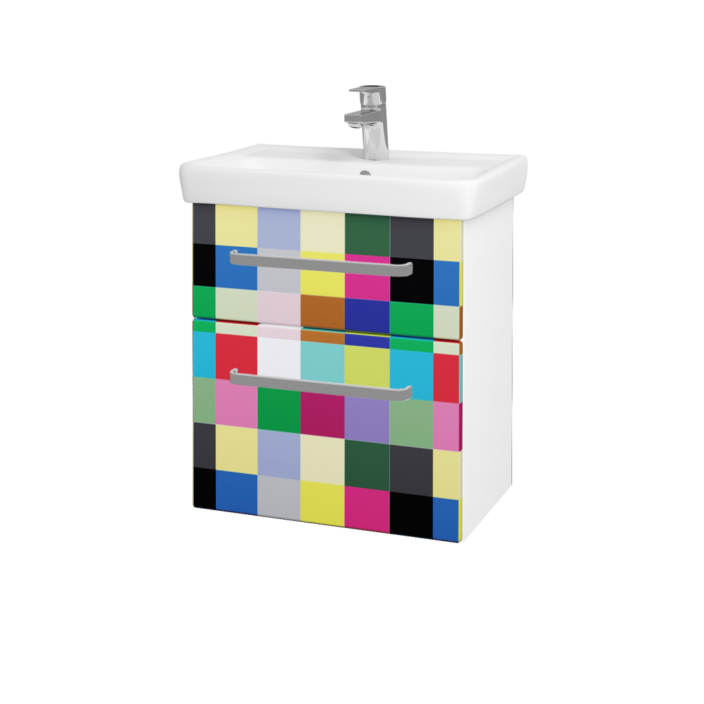Závesná kúpeľňová skrinka GO SZZ2 55 s umývadlom (súčasťou ceny) a dvoma zásuvkami je súčasťou praktickej kolekcie , ktorej prednosti ocenia predovšetkým majitelia menších či stredných kúpeľní.