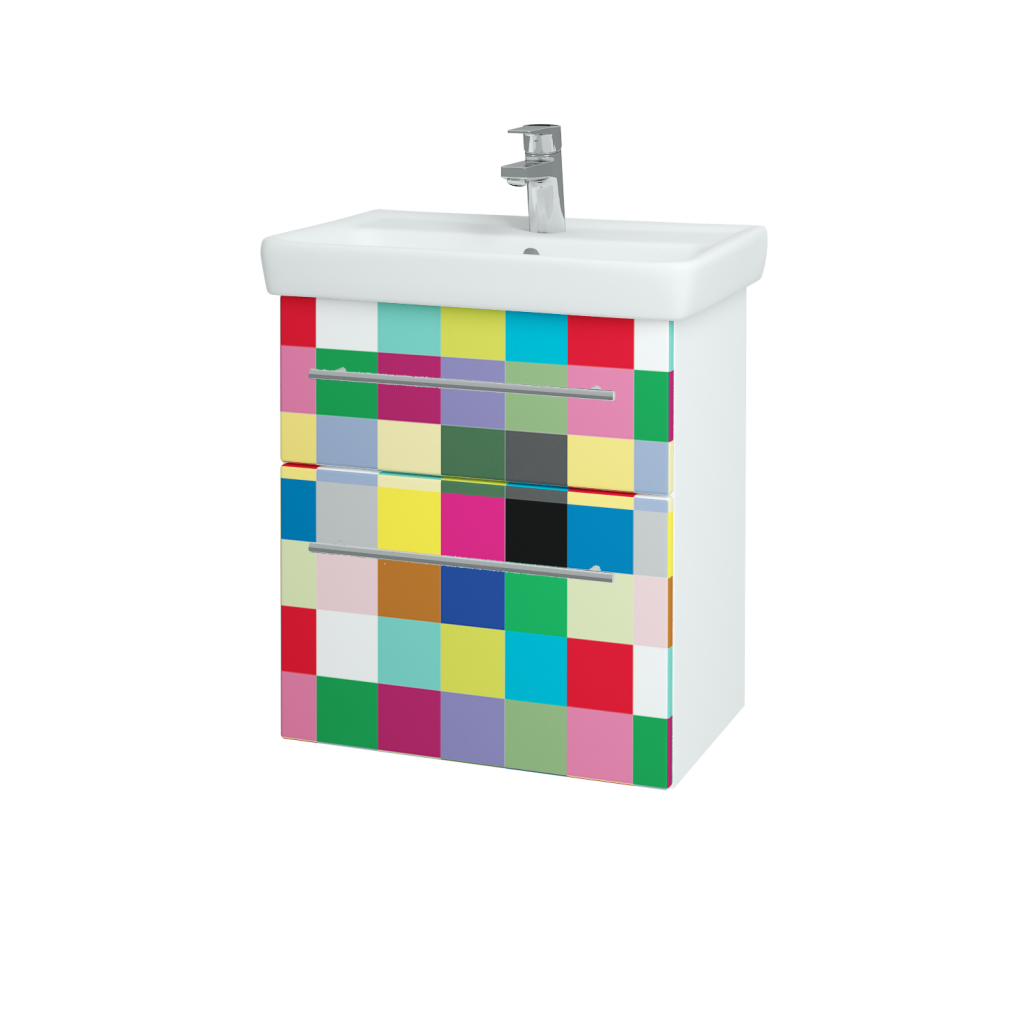 Závesná kúpeľňová skrinka GO SZZ2 55 s umývadlom (súčasťou ceny) a dvoma zásuvkami je súčasťou praktickej kolekcie , ktorej prednosti ocenia predovšetkým majitelia menších či stredných kúpeľní.