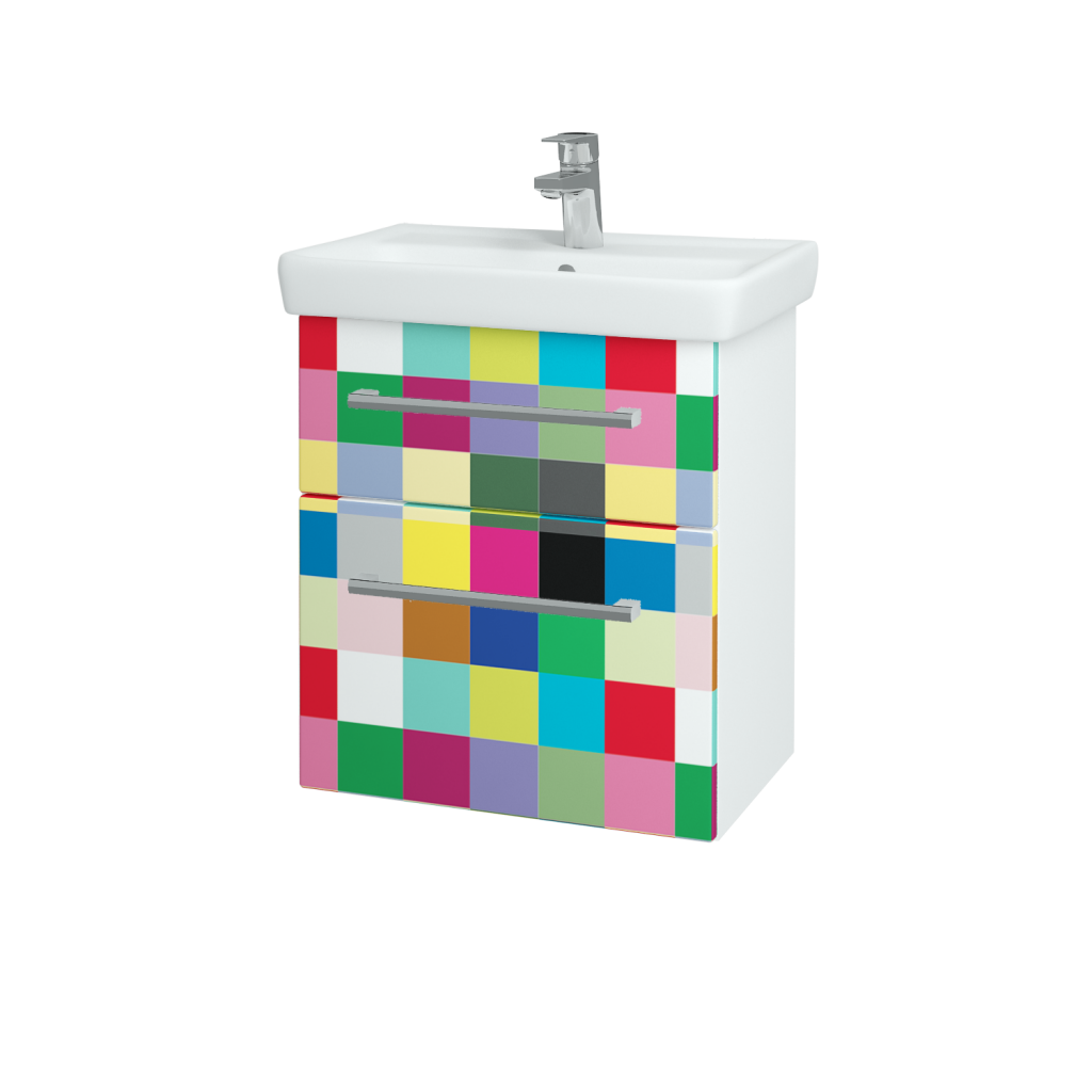 Závesná kúpeľňová skrinka GO SZZ2 55 s umývadlom (súčasťou ceny) a dvoma zásuvkami je súčasťou praktickej kolekcie , ktorej prednosti ocenia predovšetkým majitelia menších či stredných kúpeľní.
