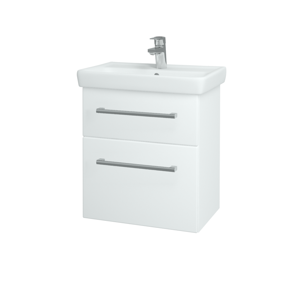 Závesná kúpeľňová skrinka GO SZZ2 55 s umývadlom (súčasťou ceny) a dvoma zásuvkami je súčasťou praktickej kolekcie , ktorej prednosti ocenia predovšetkým majitelia menších či stredných kúpeľní.