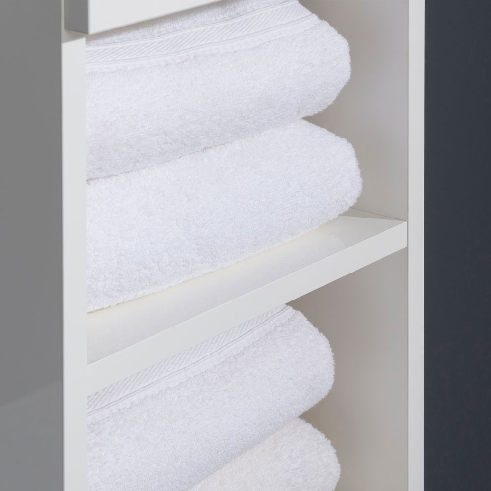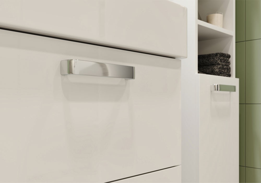 Jednoduchosť, efektívnosť, elegancia. To sú hlavné spoločné menovatele kúpeľňového nábytku, ktorý zdobí každú kúpeľňu. Táto modelová rada nábytku je dodávaná jedine v bielej lesklej farbe. Je vytvorená pre univerzálne použitie s elegantným a jednoduchým štýlom. Zásuvky sú vybavené pojazdom s brzdou pre hladšie zatváranie. Skrinka je určená na zavesenie a dodáva sa v zmontovanom stave.
