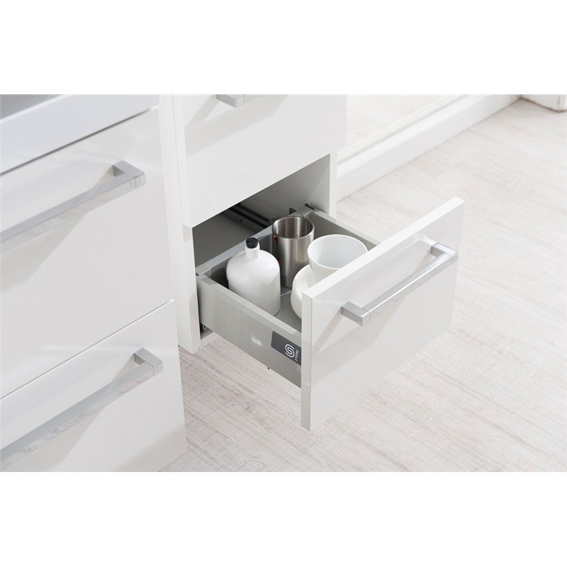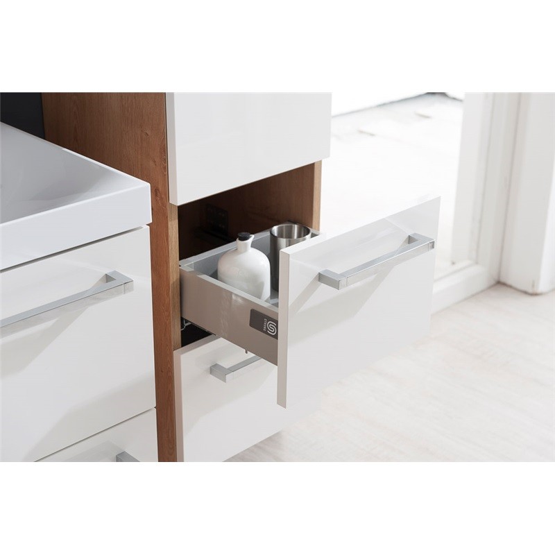 Jednoduchosť, efektívnosť, elegancia. To sú hlavné spoločné menovatele kúpeľňového nábytku Bino, ktorý ozdobí každú kúpeľňu. Vďaka kombinácii inovácií a spoľahlivého prístupu, potom vzniká kvalitný a zároveň veľmi moderný nábytok. Farebné kombinácie biely lesk, biely lesk + dub zaisťujú, že bude nábytok ladiť do každého typu kúpeľne. Užívateľsky veľmi praktické sú potom dve plnovýsuvné zásuvky so samozatváracími pojazdmi a tlmením Strong. Skrinka sa dodáva v zloženom stave.