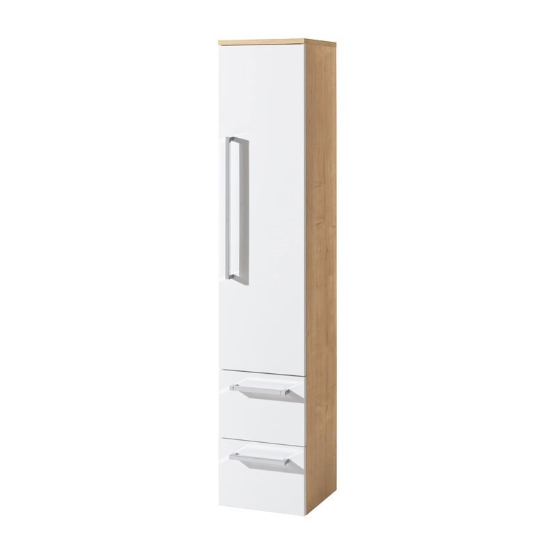 MEREO - Bino, kúpeľňová skrinka vysoká 163 cm, pravá, biela/dub (CN678)