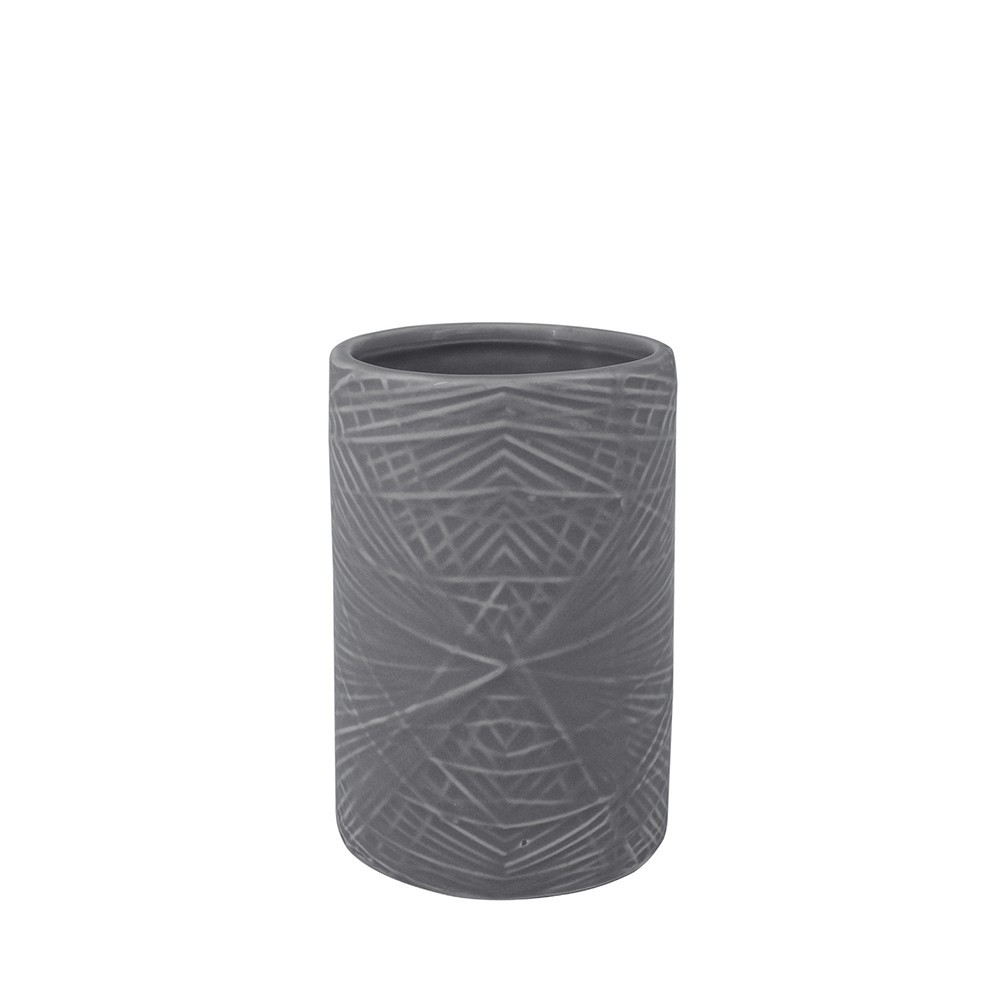 Hrnček na zubnú kefku a pastu Grigio je vyrobený z kameniny, vysoko odolnej keramiky. Celá kúpeľňová zostava Grigio je šedej farby, má lesklý povrch a jemnú pletenú textúru.