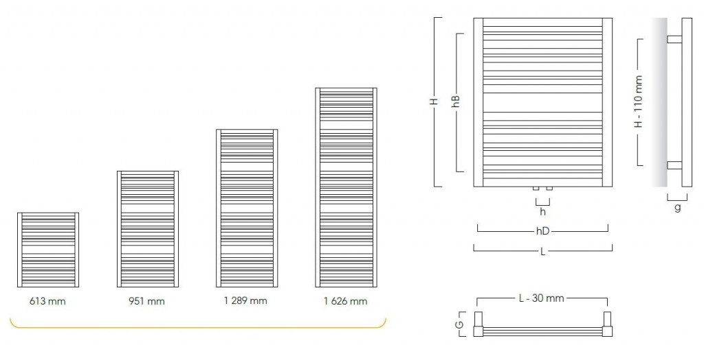 • 400 × 1 289 mm, výkon 546 W, (vykurovacia tyč 600 W)