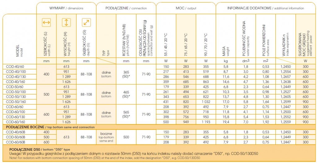 Dostupné rozmery radiátora CODE do kúpeľne: