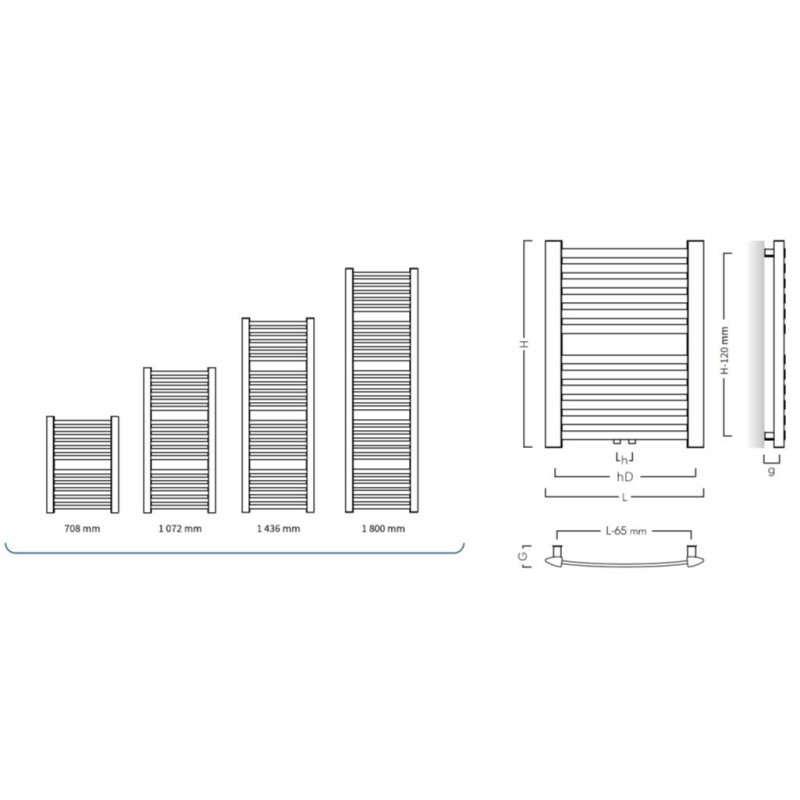Dostupné rozmery radiátora RETTO vo farbe C12 graphite do kúpeľne:- 540 × 1800 mm, výkon 838 W (vykurovacia tyč 900 W)