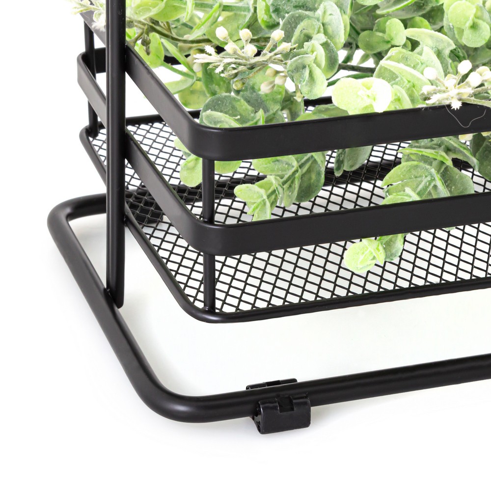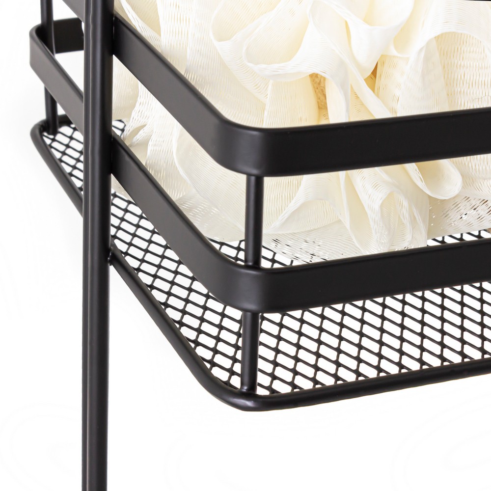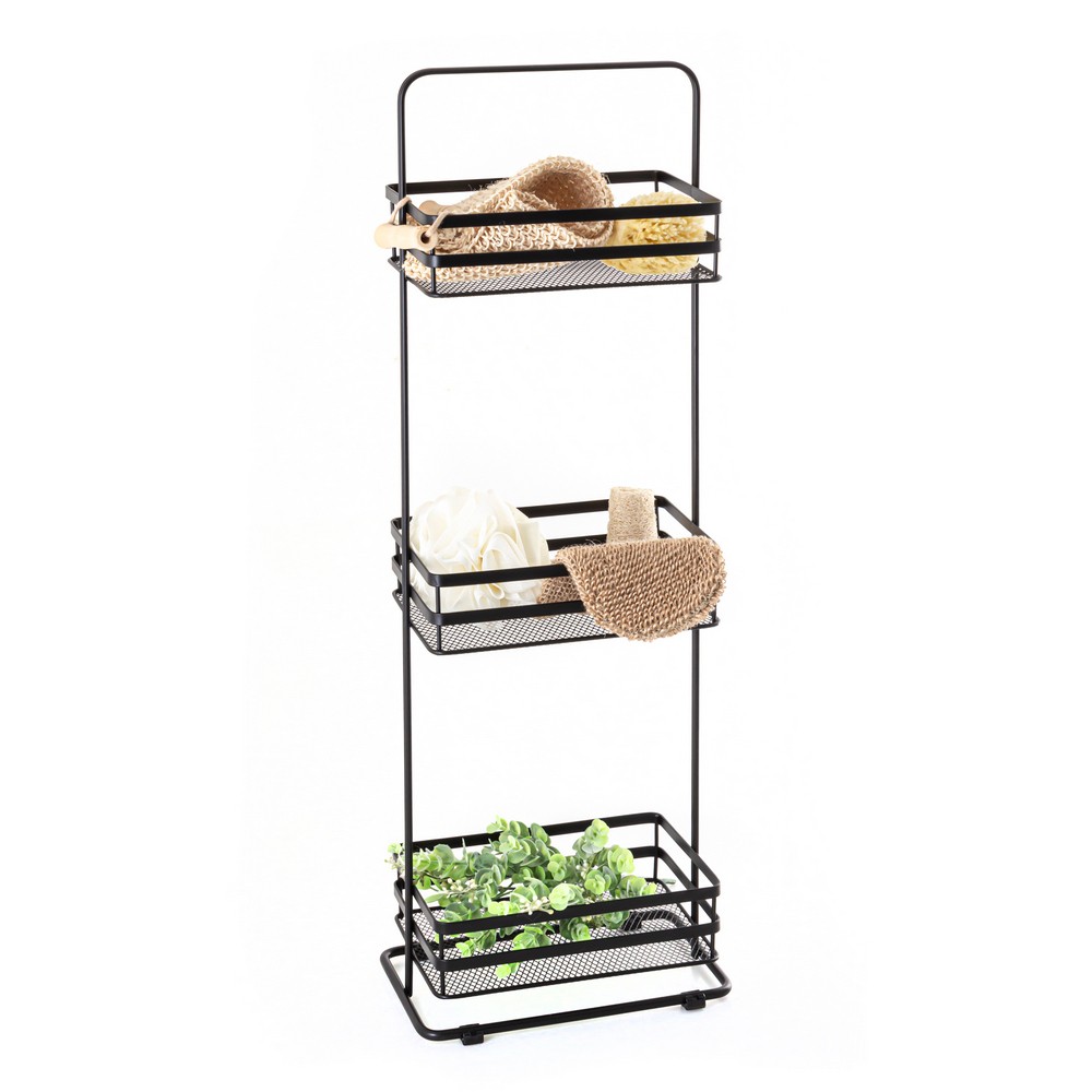 Štýlová polica z ocele lakovaná v matnej čiernej farbe. Regál má 3 police s mriežkovou základňou, na ktorú je možné umiestniť aj drobné príslušenstvo. Polica je ťažká a stabilná a jej základňa je navyše vybavená plastovými nožičkami. Toto riešenie chráni pred poškriabaním ako policu, tak podlahu, na ktorej bude umiestnená. Nespornou výhodou police je, že nevyžaduje montáž. Stačí ho umiestniť na zvolené miesto a ihneď si môžete užívať jeho plnú funkčnosť. Skvele sa bude hodiť ako všestranná polička do kúpeľne, kuchyne alebo predsiene.