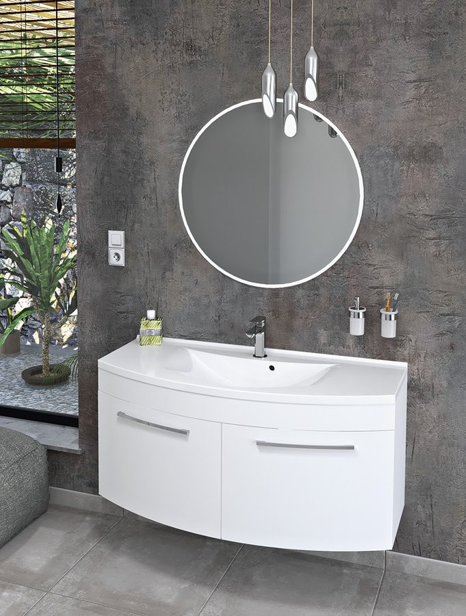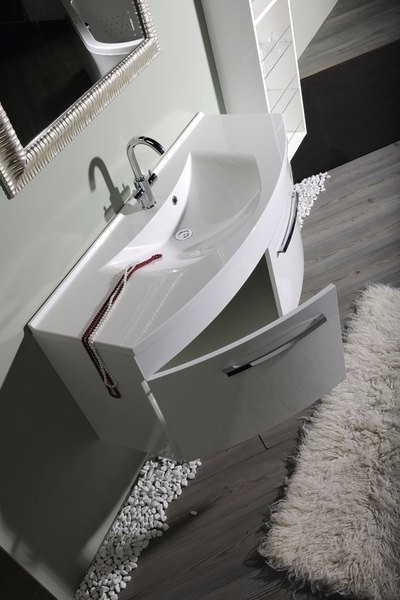 Kúpeľňový nábytok Julie zjemňuje línie hrán ľúbivým zaoblením čelných plôch umývadlových skriniek. Výsledkom je kompaktný dizajn umocnený lesklým lakom. K dispozícii sú umývadlové skrinky s dvierkami alebo v prevedení so zásuvkami. V našej ponuke nájdete umývadlá z liateho mramoru, vrátane praktického dvojumývadlá, ku ktorým sú tieto skrinky vhodné