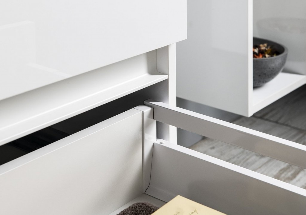 Nábytok je vybavený pojazdy zásuviek s pomalým dojazdom a systémom automatického dovretí zásuviek. Už žiadne hlučné zatváranie.