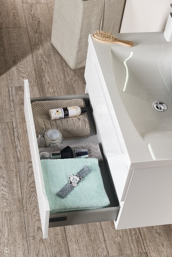 Nábytok je vybavený pojazdy zásuviek s pomalým dojazdom a systémom automatického dovretí zásuviek. Už žiadne hlučné zatváranie.