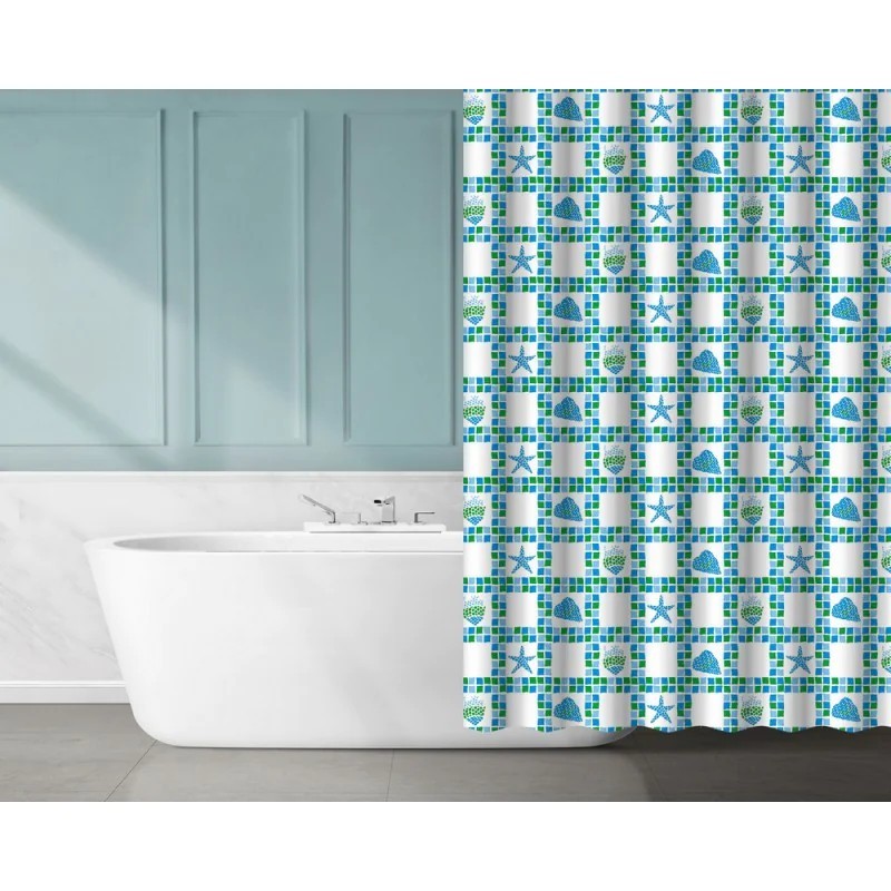 Úžasne praktické a jednoduché riešenie, nahrádzajúci sprchovací kút, vaňovú zástenu alebo sprchové dvere. Kúpeľňový plastový sprchový záves Olsen Spa, je vytvorený z recyklovaného PEVA materiálu, ktorý sa vyznačuje šetrnosťou k prírode. Jednoduchá inštalácia pomocou závesných krúžkov, ktoré sú súčasťou balenia. Biely podklad s modrými a zelenými vzormi, tvoriace mozaiku, obohatí vašu kúpeľňu.