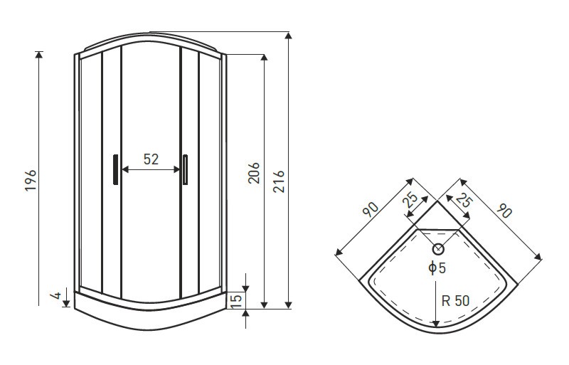 - Rozmery kabíny: 90 x 90 x 216 cm