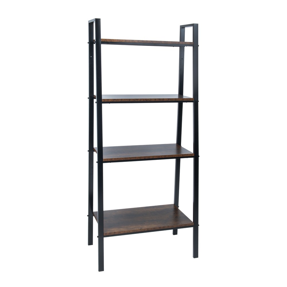 Funkčné police so štyrmi policami z MDF dosky potiahnuté krásnou pálenou drevenou dyhou. Je vyrobená z čierno lakovanej ocele. Bude ideálnym riešením na uloženie a vystavenie rôznych predmetov v kúpeľni, obývacej izbe alebo na akomkoľvek inom mieste vo vašej domácnosti. Táto široká polica ponúka veľkú kapacitu a pevnú konštrukciu zaručujúcu nielen funkčnosť, ale aj estetický vzhľad. Vyžaduje vlastnú montáž.