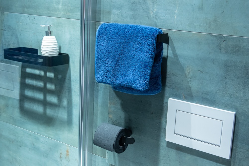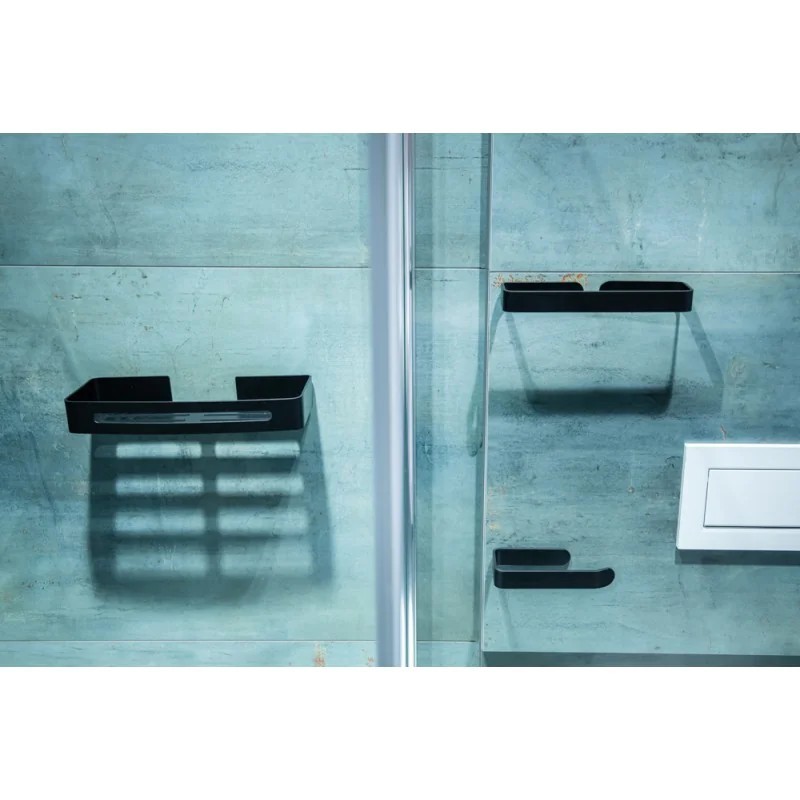 Ľahká kúpeľňová polička z hliníka lakovaného matnou čiernou farbou . Inštalácia sa vykonáva na samolepiacu pásku 3M s vysokou lepiacou silou . Samolepiace kúpeľňové doplnky sú ideálnym riešením, ak nechcete vŕtať do obkladov . Veľmi kvalitná lepiaca páska 3M priľne k rôznym povrchom a umožňuje ľahké odstránenie doplnkov bez zanechania stôp či poškodenia. Jej maximálna nosnosť je 3 kg.