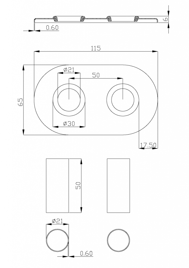 - 1 x dvojitá oválna ružica 65 x 115 mm