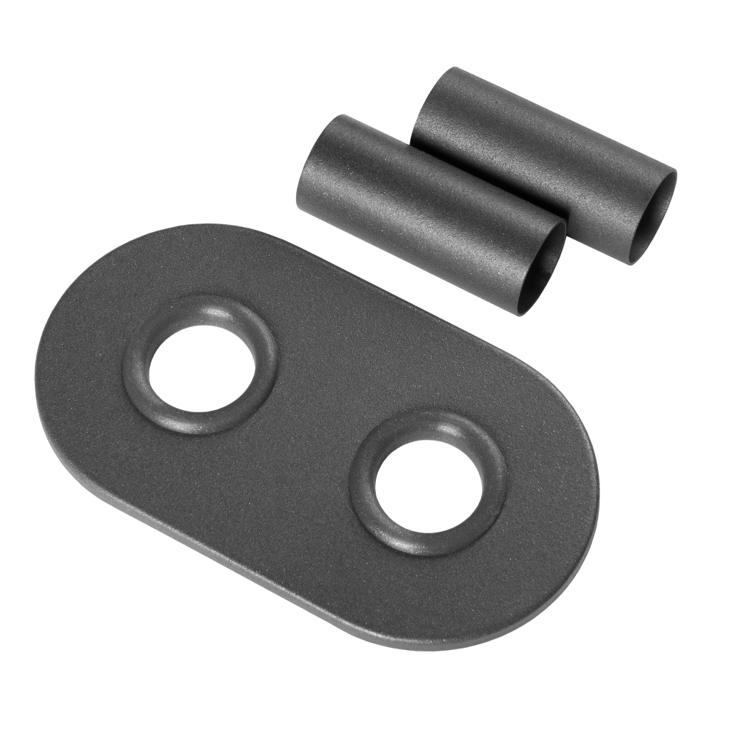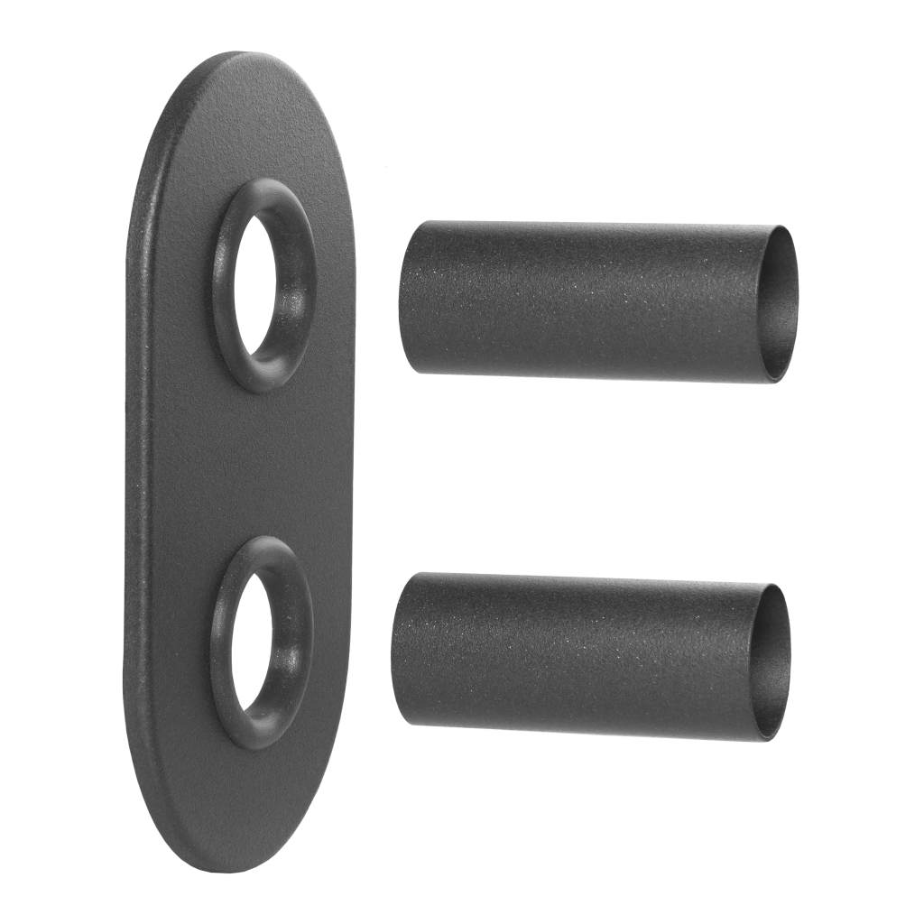 Set krycej dvojitej oválnej rozety s dvoma otvormi a objímkami na radiátor je sada, ktorá sa používa na zakrytie spojov medzi radiátorom a prívodným potrubím, čím zaisťuje estetický vzhľad a bezpečné upevnenie radiátora. Sada je vo farebnom prevedení grafit.