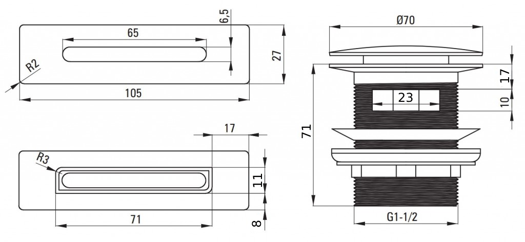 Krytka prepadu a click-clack biely k voľne stojacim vaniam: