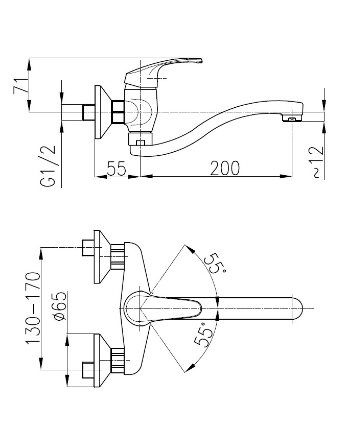 Nástenná drezová batéria KRZEM od výrobcu KFA ARMATUR A s rozstupom 150 mm. Výhodou je otočné ramienko s dĺžkou 150 mm a perlátorom.