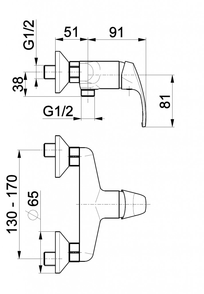 Nástenná sprchová batéria KRZEM od výrobcu KFA ARMATUR A s rozstupom 150 mm bez príslušenstva.