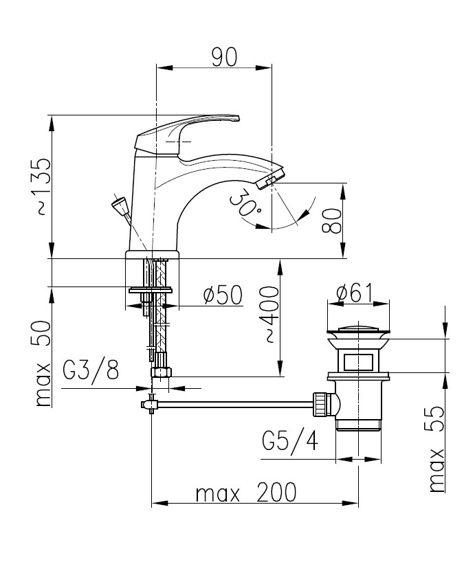 | Ovládanie | keramický regulátor. Ø35, 2-stupňová |