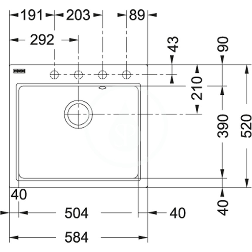 - výřez: 564 x 500 mm (rádius 10 mm)