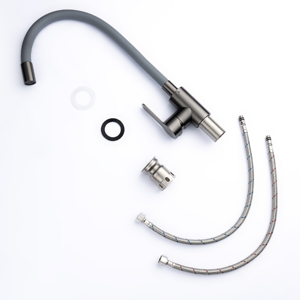 Moderná stojanková kuchynská batéria s flexibilným výtokom ponúka kombináciu štýlového designu a praktickosti. Vďaka silikónovému výtoku, ktorý sa dá ľahko natáčať, poskytuje skvelý komfort pri každodennom používaní.