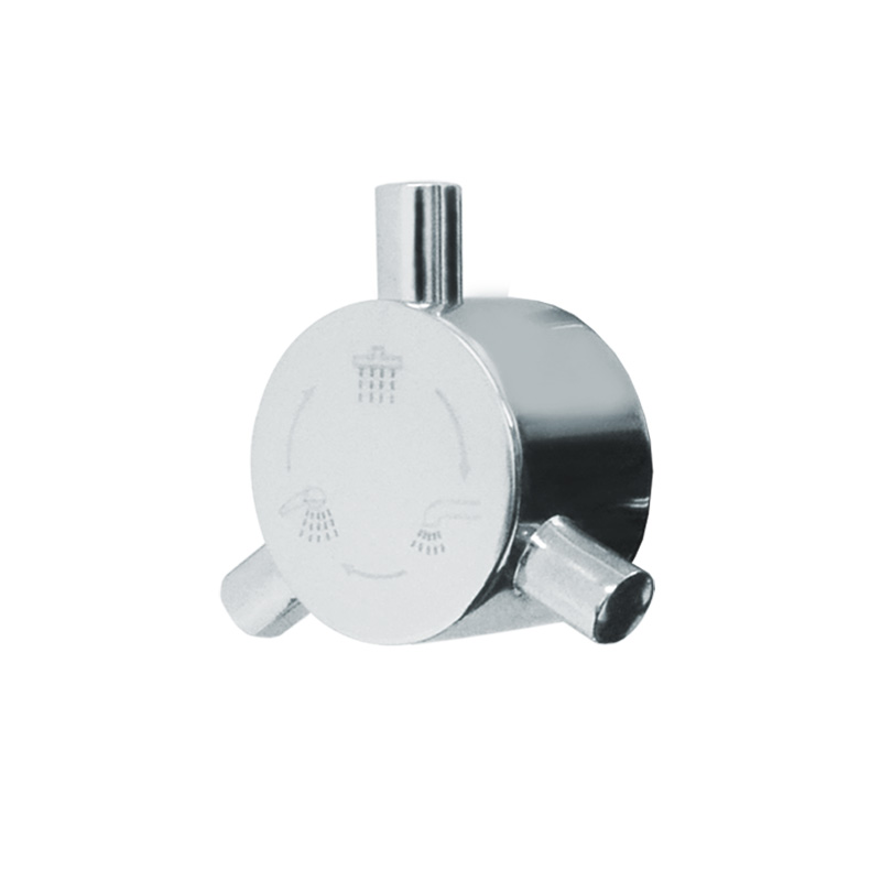 Nerezová okrúhla krytka prepínača pre trojcestné podomietkové batérie, sedí na podomietkové teleso CBE60107.