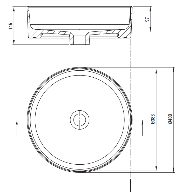 Samotné umývadlo na dosku má priemer 40 cm a na výšku má 12 cm , čo nabáda k tomu, že je možnosť umiestnenia dvoch umývadiel vedľa seba /pokiaľ vám priestor dovolí/. Umývadlo nemá bezpečnostný prepad ani otvor pre batériu . Preto k nemu vyberajte vysokú umývadlovú batériu alebo podomietkovú umývadlovú batériu . Dôležité je vybrať správnu výpusť . Vhodná je univerzálna alebo určená pre umývadlá bez prepadu.