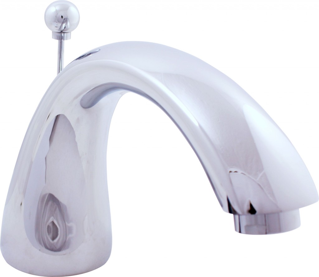 Okrúhly výtok s prepínačom na okraj vane.