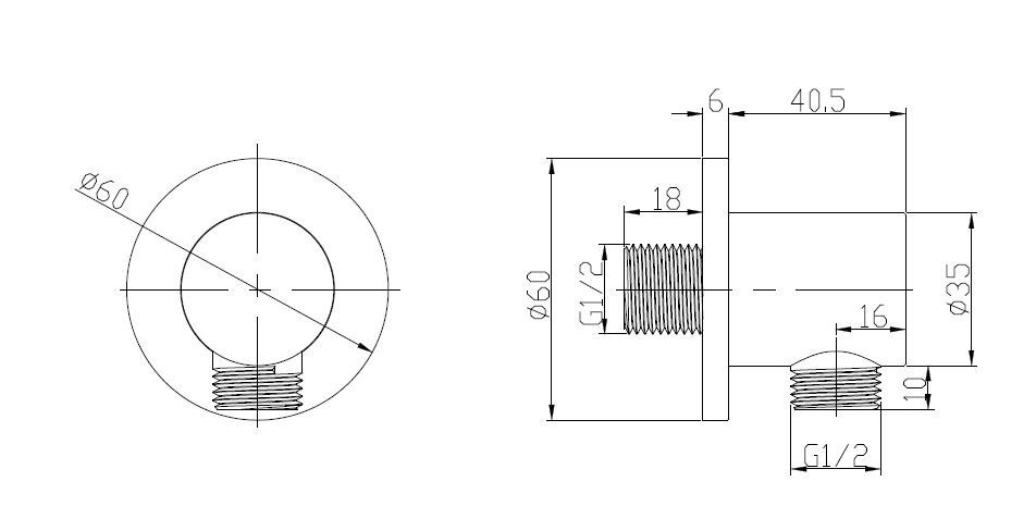 Okrúhly vývod zo steny z prvotriedneho materiálu. Stenový vývod je určený p ro kombinácii s podomietkovú batériou - sprchovú aj vaňovú.