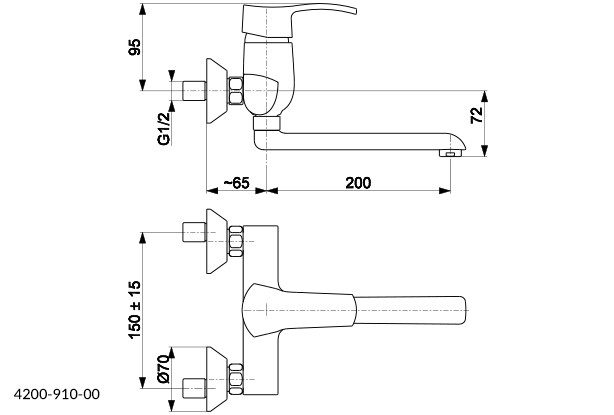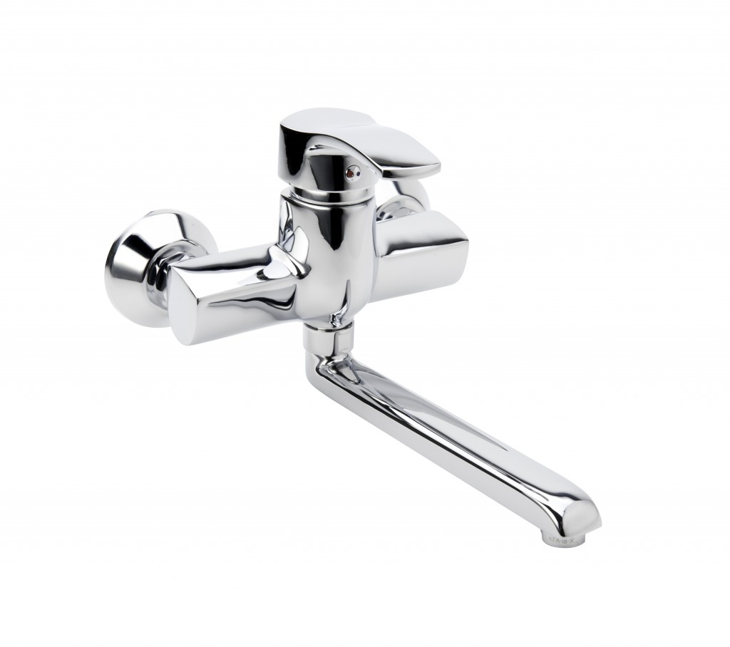 Nástenná drezová batéria KWARC od výrobcu KFA ARMATUR A s rozstupom 150 mm. Výhodou je otočné ramienko s dĺžkou 200 mm a perlátorom.