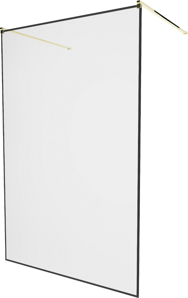 Walk-in sprchová zástena KIOTO 100 x 200 cm, 8 mm - číre sklo s čiernym vzorom, zlaté vzpery