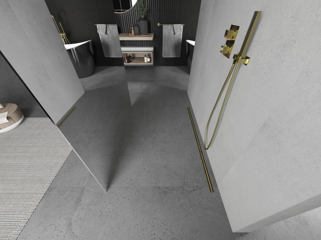 Walk-in sprchová zástena KIOTO 100 x 200 cm, 8 mm - zrkadlové sklo, zlaté vzpery
