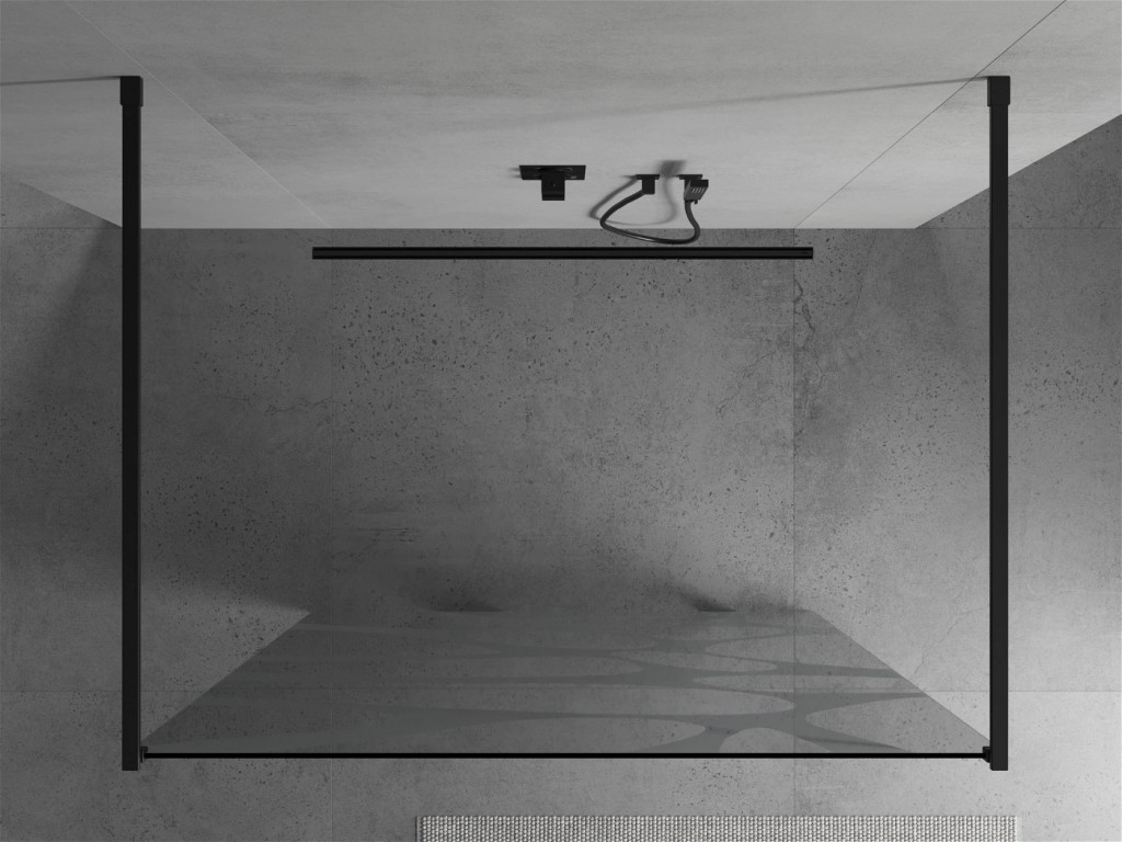 Walk-in sprchová zástena KIOTO 110 x 200 cm, 8 mm - číre sklo s bielym dekorom, čierne vzpery