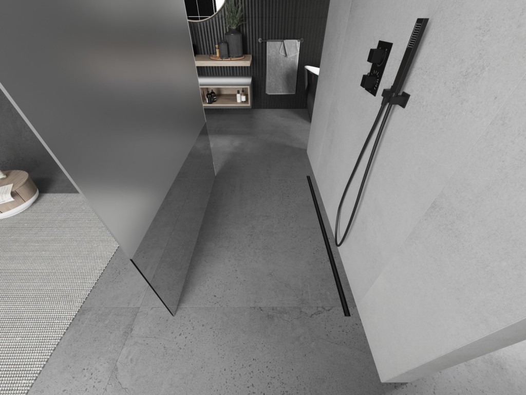 Walk-in sprchová zástena KIOTO 110 x 200 cm, 8 mm - číre/matné sklo, čierne vzpery