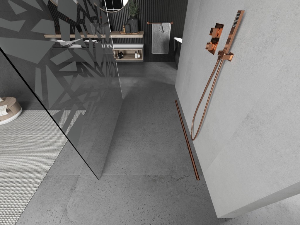 Walk-in sprchová zástena KIOTO 120 x 200 cm, 8 mm - číre sklo s bielym dekorom, ružovo zlaté vzpery