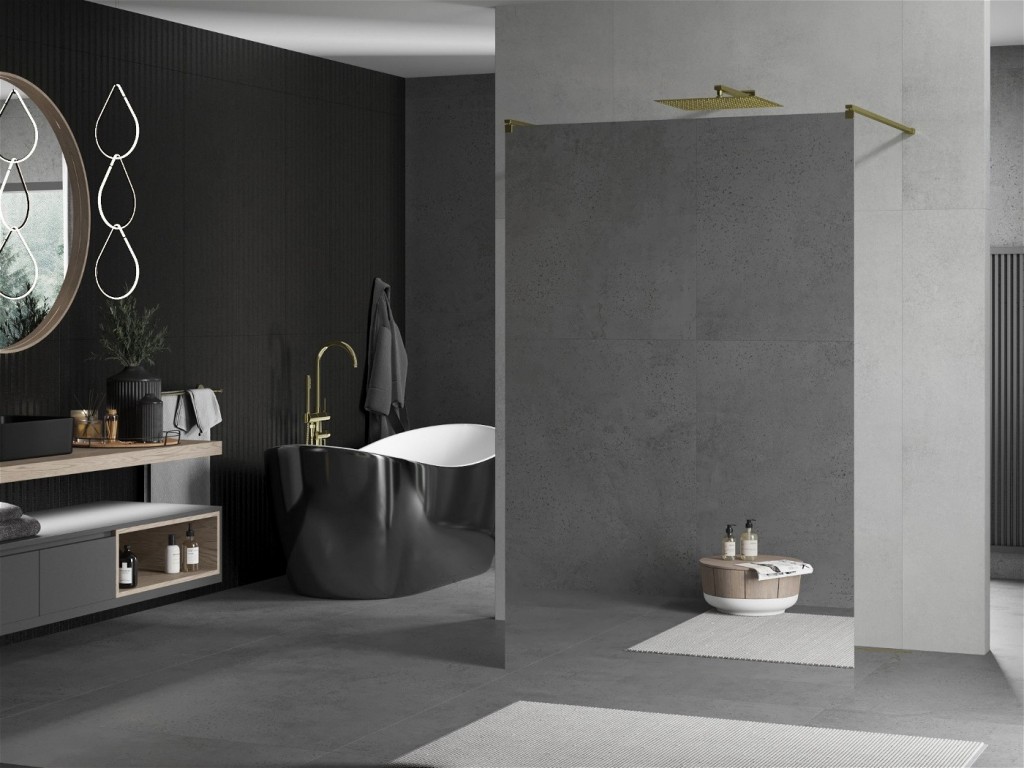 Walk-in sprchová zástena KIOTO 120 x 200 cm, 8 mm - zrkadlové sklo, zlaté vzpery