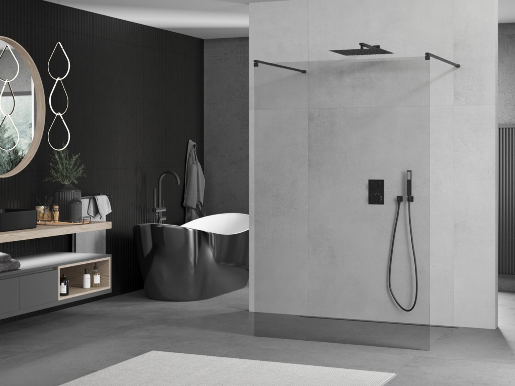 Walk-in sprchová zástena KIOTO 130 x 200 cm, 8 mm - číre sklo, čierne vzpery