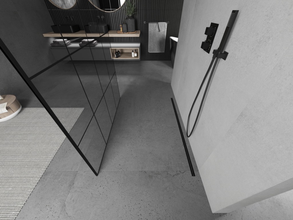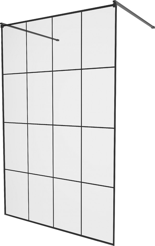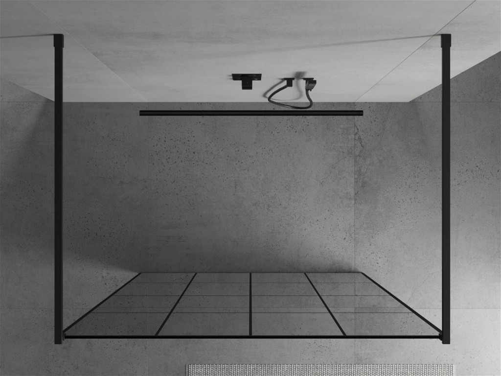 Walk-in sprchová zástena KIOTO 130 x 200 cm, 8 mm - číre sklo s početným vzorom, čierne vzpery