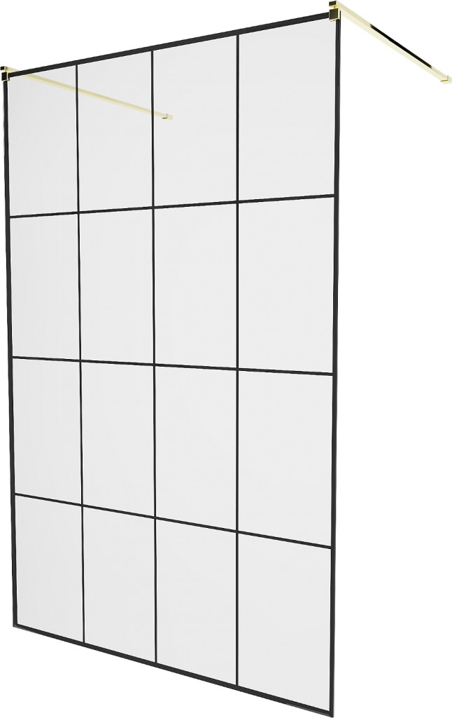 Walk-in sprchová zástena KIOTO 130 x 200 cm, 8 mm - číre sklo s čiernym vzorom, zlaté vzpery