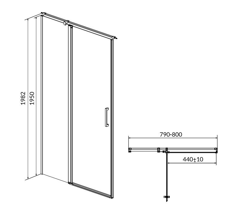 Sprchové dvere MODUO sú k dispozícii v troch veľkostiach 80, 90 a 100 cm, prevedenie pravé alebo ľavé varianty.