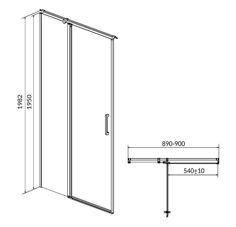 Sprchové dvere MODUO sú k dispozícii v troch veľkostiach 80, 90 a 100 cm, prevedenie pravé alebo ľavé varianty.