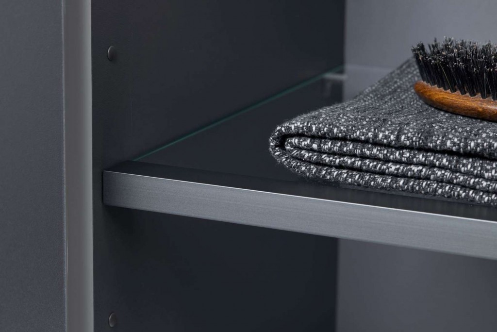 - materiál vnútornej časti: vysoko kompaktná trojvrstvová DTD, obojstranne tvrdená melamínovou živicou, farba diamantovo čierna