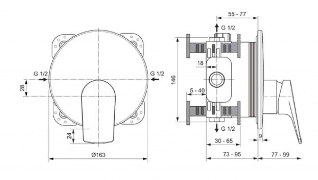 - kruhová krycia rozeta, priemer 163 mm