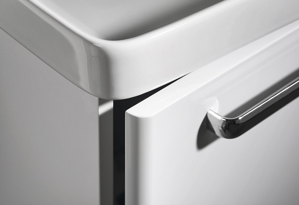 Nábytok je vybavený mechanizmom spomaľovacích pántov u dvierok. Stačí dvierka len ľahko postrčiť a ony sa už samy dovrou.