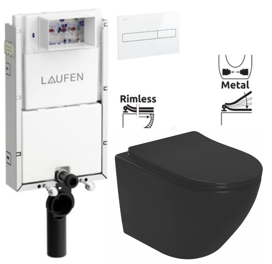 Závesná WC misa RIMLESS Carlo Mini Slim čierna matná (REA-C8489)