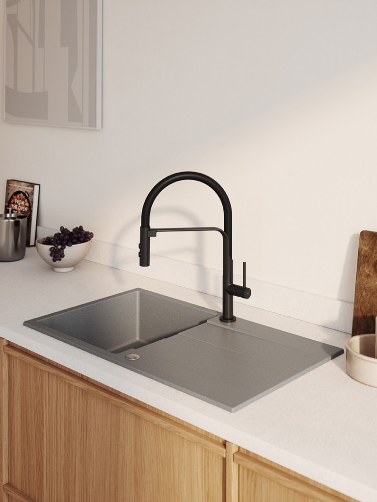 Rad Laut kombinuje modernitu s funkčnosťou a ponúka drezy, ktoré sa perfektne hodia do každej kuchyne. K dispozícii sú s plným alebo polovičným odtokom, takže ich možno ľahko prispôsobiť rôznym usporiadaniam a poskytnúť tak dostatok priestoru na sušenie riadu alebo ďalšiu pracovnú plochu. Modely Laut sa vyznačujú obojstrannou inštaláciou a zapusteným dizajnom, čo zaisťuje estetický vzhľad a flexibilitu dizajnu. Inovatívny sifón šetriaci miesto maximalizuje priestor pod drezom, zatiaľ čo drážky na odtoku efektívne odvádzajú vodu, čo uľahčuje čistenie. Drezy Laut, vyrobené z vysoko kvalitnej žuly, sú odolné, odolné voči poškodeniu a vysokým teplotám a ich hladké povrchy odolné voči škvrnám sa ľahko čistia, čo z nich robí praktickú voľbu pre modernú kuchyňu.