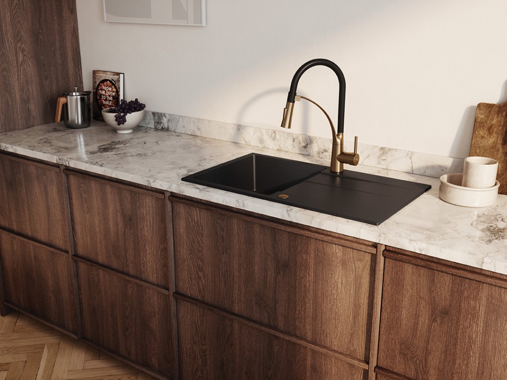 Rad Laut kombinuje modernitu s funkčnosťou a ponúka drezy, ktoré sa perfektne hodia do každej kuchyne. K dispozícii sú s plným alebo polovičným odtokom, takže ich možno ľahko prispôsobiť rôznym usporiadaniam a poskytnúť tak dostatok priestoru na sušenie riadu alebo ďalšiu pracovnú plochu. Modely Laut sa vyznačujú obojstrannou inštaláciou a zapusteným dizajnom, čo zaisťuje estetický vzhľad a flexibilitu dizajnu. Inovatívny sifón šetriaci miesto maximalizuje priestor pod drezom, zatiaľ čo drážky na odtoku efektívne odvádzajú vodu, čo uľahčuje čistenie. Drezy Laut, vyrobené z vysoko kvalitnej žuly, sú odolné, odolné voči poškodeniu a vysokým teplotám a ich hladké povrchy odolné voči škvrnám sa ľahko čistia, čo z nich robí praktickú voľbu pre modernú kuchyňu.
